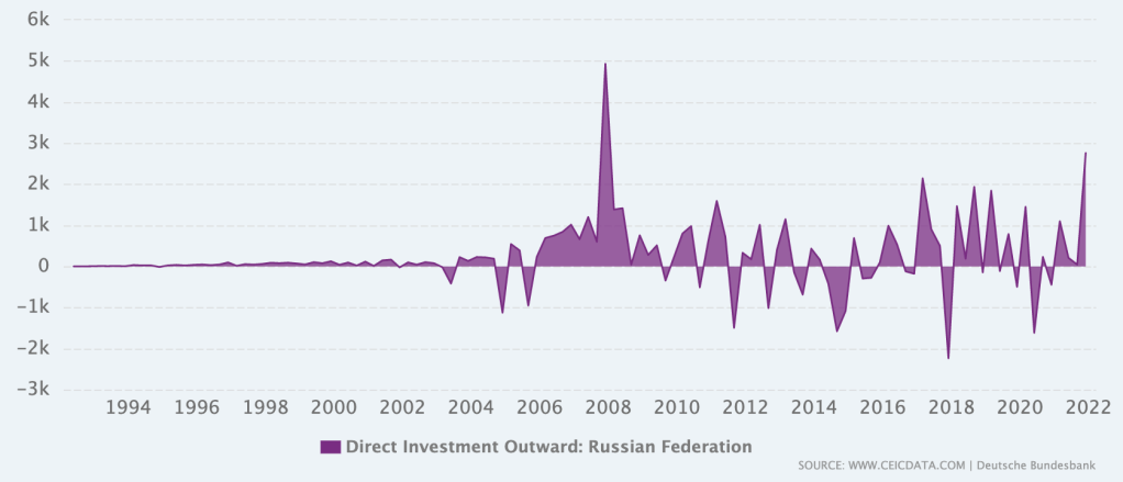 A second indicator of the economic interdependence of national total capital also highlights the inadequacy of an economistic explanation of German foreign policy toward Russia. Direct investment by German capital in Russia is not exceptionally high, peaking as early as 2007 at 4.9 billion euros, while in 2021, it amounted to only 2.7 billion euros (see Fig. 8). Around 4.000 German companies have a registered office in Russia. It is noteworthy that it is mainly smaller medium-sized companies that invest in Russia. Not coincidentally, the class base of German neo-Nazism and the Wagenknecht faction of left bourgeois socialism is formed by the petty bourgeoisie.